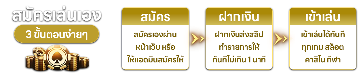 ตอบ : - เข้าเว็บไซต์หลัก กดปุ่มสมัครสมาชิก - กรอกข้อมูลส่วนตัวให้ครบถ้วน - ยืนยันเบอร์โทรศัพท์และอีเมล - รอรับ Username/Password ทางSMS